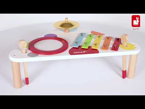 Волшебный развивающий столик для детей от французского бренда Janod. Здесь дети найдут: ксилофон, колокольчик и мини-барабан. Пара палочек помогут детям исследовать звуки, которые издает каждый элемент. На ксилофоне можно даже научиться играть мелодии. Интерактивный столик всегда будет привлекать детей и побуждать к развитию слуховых, зрительных и тактильных ощущений, а также к импровизации.